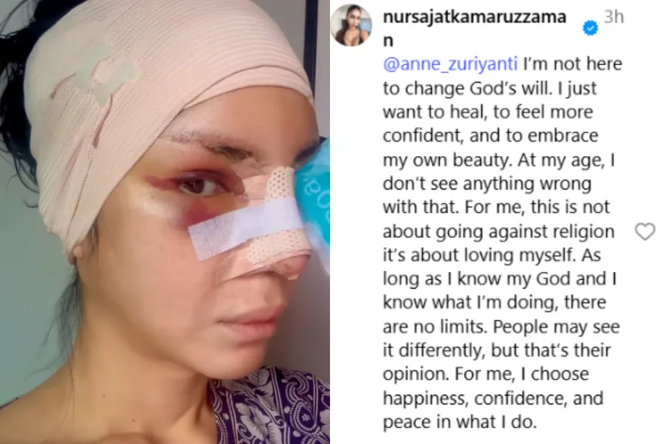 On 15th August, Nur Sajat shared a photo on Instagram revealing that she had undergone a cosmetic procedure on her nose. “Call it surgery, I call it self-love. My life, my rules, my happiness, my choice, my nose. Period,” she wrote in the caption. Prior to that, she had shared a quote stating that plastic surgery is not ‘fake happiness’ and that individuals should be free to do as they please with their bodies.
