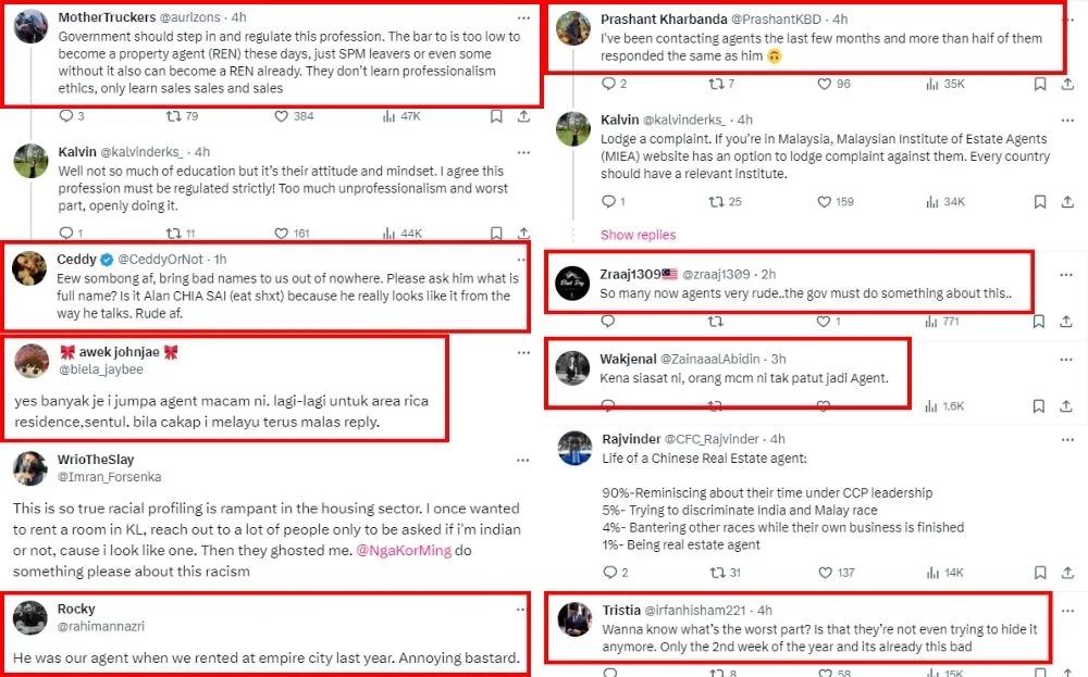 Many netizens who reacted to the tweet were similarly appalled by Alan’s racist comments, urging him to apologise to Kalvin. Some of Alan’s previous clients revealed that this isn’t the first instance of his unprofessional behaviour, saying they also had a terrible experience working with him. Unfortunately, some lamented that many other property agents are just as rude as Alan, if not more.