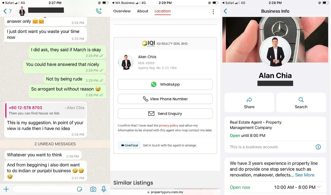Malaysia boasts a multicultural and multiracial background – but unfortunately, many locals still experience bouts of racism, even from individuals in the professional field. Twitter user Kalvin recently exposed her conversation with an IQI Global property agent named Alan Chia, who she found disrespectful.