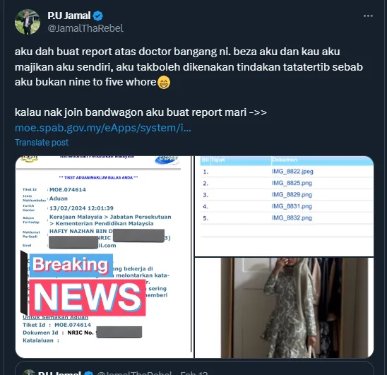 Jamal originally planned to file a report to the Penang Hospital’s disciplinary board regarding their staff’s behaviour. Many seemed to support his decision and even recommended he file a report on the medical practitioner via the Public Complaint Management System (SISPAA) and email the Ministry of Health regarding the issue.