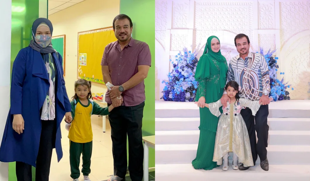 The legendary superstar took to her IG to share an adorable photo taken during Aafiyah’s first day of pre-school. TokTi wasn’t alone as her husband, Dato’ Sri Khalid Mohamad Jiwa, was also spotted accompanying his eldest daughter during her first day at the kindergarten.