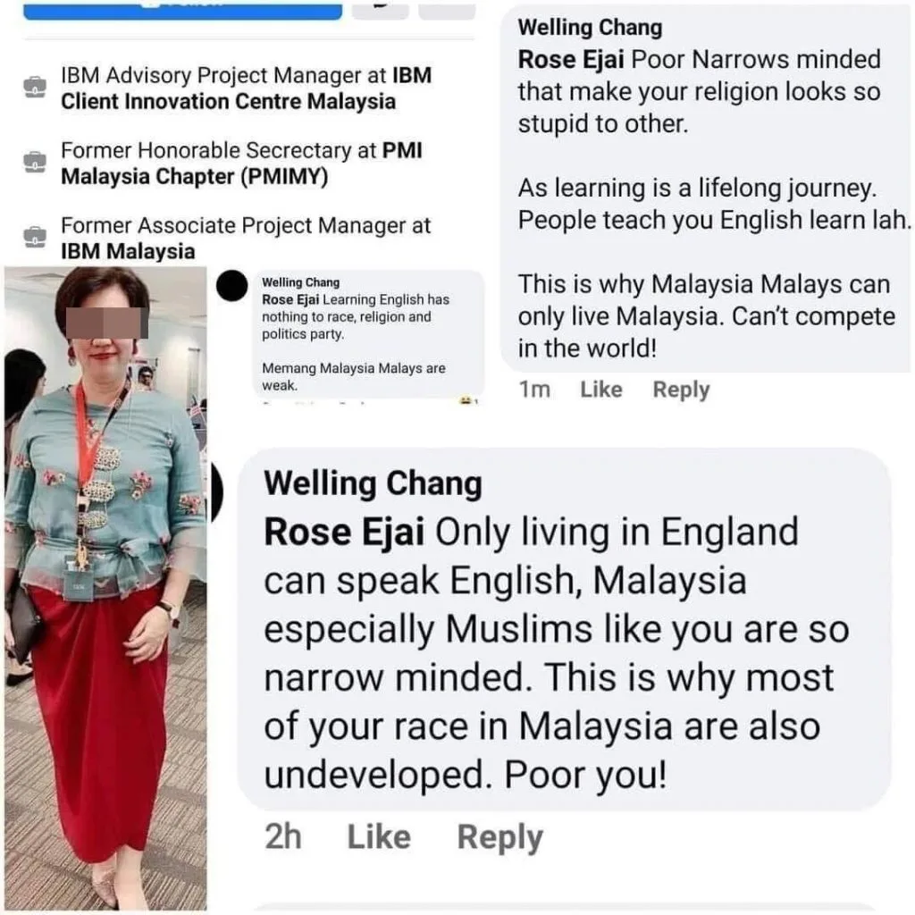 Scrolling through her Facebook, netizens discovered that she is an employee at the global tech company, IBM. Netizens took to IBM Malaysia’s Facebook to lodge a report about the issue regarding Welling’s controversial statement.