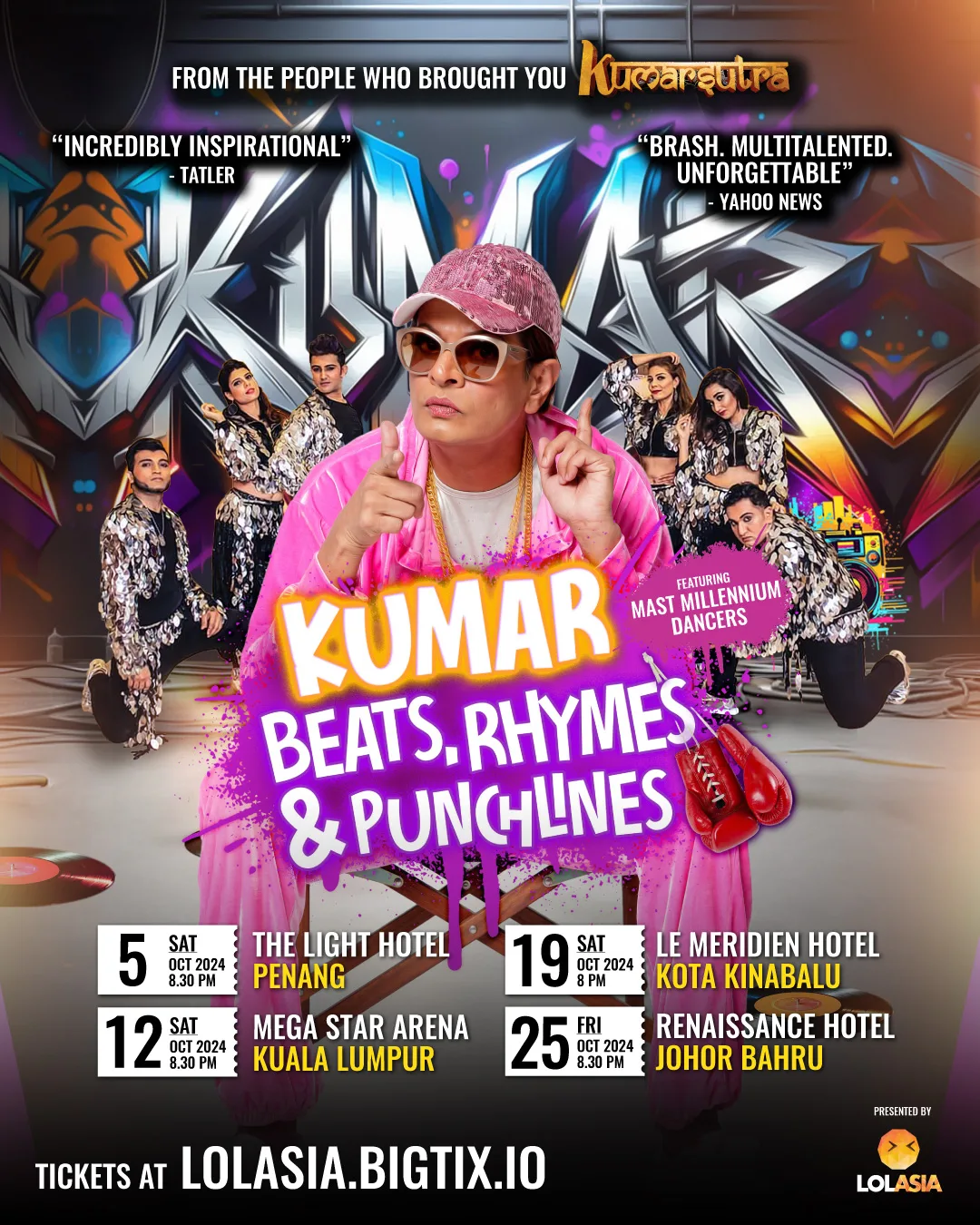 Comedy legend Kumar is ready tickle your funny bone with his brand-new international show, “Beats, Rhymes & Punchlines”. Set to be a retro riot that’s part stand-up, part musical, and all heart, the beloved Singaporean will not only be returning to Kuala Lumpur but also touring across 3 other states – namely Penang, Kota Kinabalu and Johor Bahru.