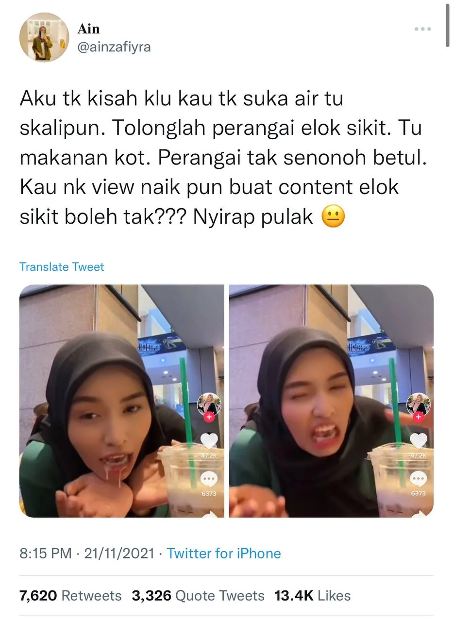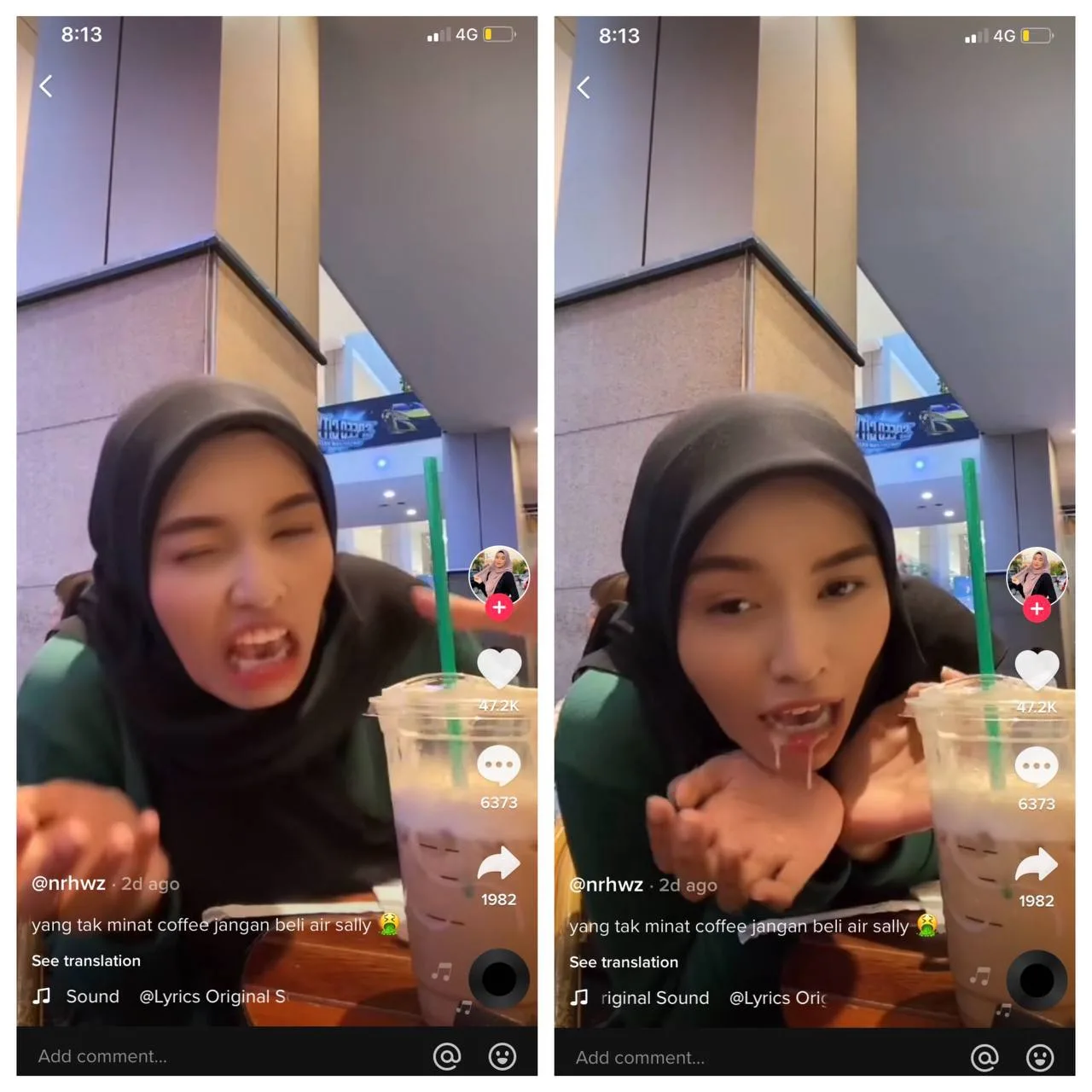 Having made a name for herself for her contents on both TikTok and Instagram, Nur Hamira or also known as Mira, has been one of the netizens that has jumped on the bandwagon to try the famous “Sally’s Drink”. Although, the reactions she has gotten from other netizens weren’t really what she expected. Well, we weren’t really sure of what did she expect when she uploaded a video of her spitting the drink out with indecent expressions.