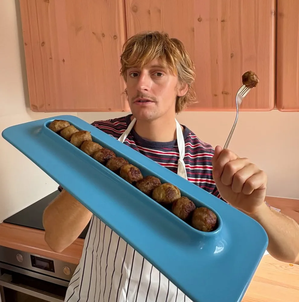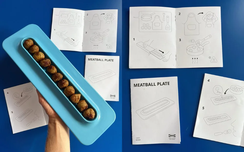 Introducing the Meatball Plate: the company’s first-ever plate dedicated to its iconic meatballs. The porcelain plate is part of IKEA’s upcoming 12-piece collaboration collection with Swedish designer Gustaf Westman. The serving dish is specially designed to fit IKEA’s meatballs, arranging them in a celebratory row. While the dish is ideal for Swedish meatballs, it can serve anything, as long as it fits the long crevice.