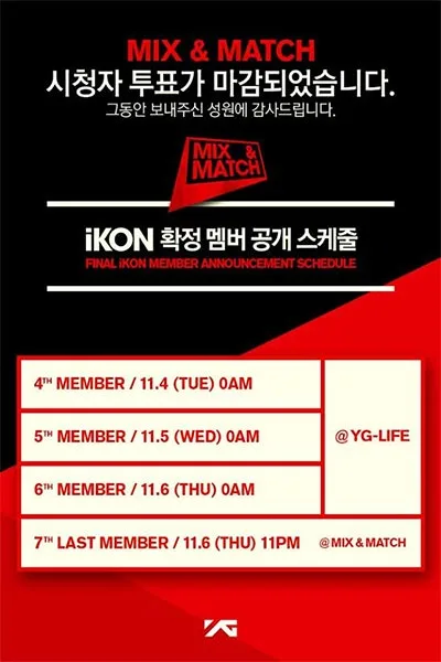 After announcing the official debut date of iKON, YG Entertainment is set to reveal the 7th and last member of the group via the final episode of their talent survival program, “Mix & Match”. So far, the only confirmed members in the group are B.I, Bobby, and Kim Jin Hwan.