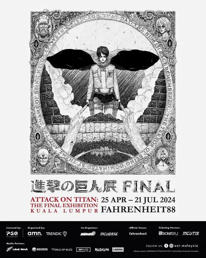 Here’s your chance to enter the savage world of humanity’s struggle for survival against monstrous titans! Based on the manga masterpiece of Hajime Isayama, join Eren Yeager and the Survey Corps at the Attack on Titan Final Exhibition in Malaysia! Click here to get your tickets to the exhibition.