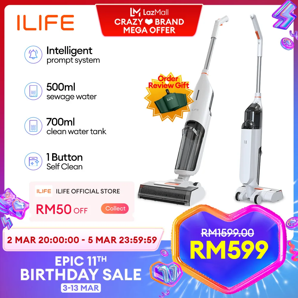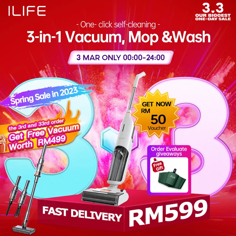 Originally priced at RM749, you can take advantage of the 3.3 sale and purchase the ILIFE W90 Cordless Wet Dry Vacuum Cleaner for only RM599 via Lazada or Shopee.