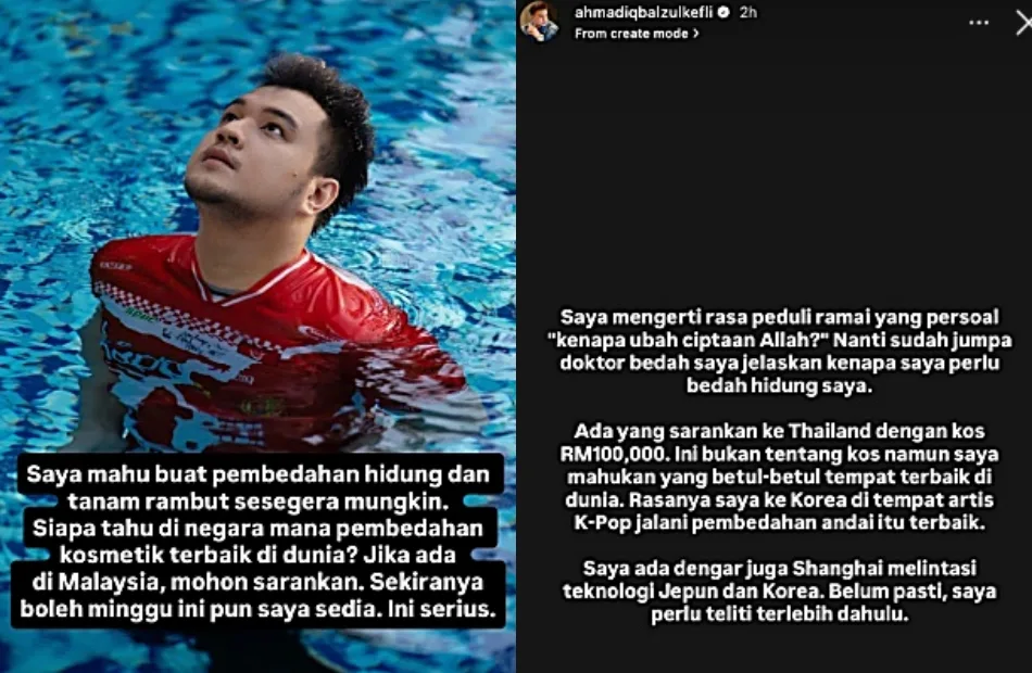 Over the weekend, Iqbal Zulkefli took to his Instagram Story to ask followers for recommendations on which country offers the best cosmetic procedures, as he plans to undergo them as soon as possible. This sparked concern among netizens, who argued that he has no real need for such surgeries and reminded him that they are prohibited in Islam.