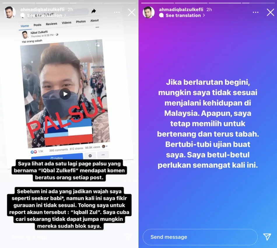 He added, “I received tons of messages this morning, they asked whether I created a new FB account. The answer is, ‘No!’ My only Facebook account is Ahmad Iqbal Zulkefli. I also came across another fake profile named Iqbal Zulkefli, which receives hundreds of comments per post.”