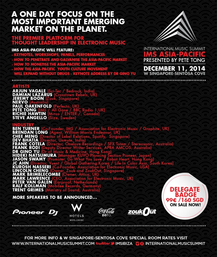 Fast forward to 2014, IMS continues to pave the way in the electronic music industry. Described by many as “the TED of music conferences”, 3 IMS panels in 2013 were voted in the top 10 electronic music debates of all-time by Beatport. This year, for the first time ever, the world’s most influential electronic music summit will make its way to Asia in Singapore on 11th Dec.