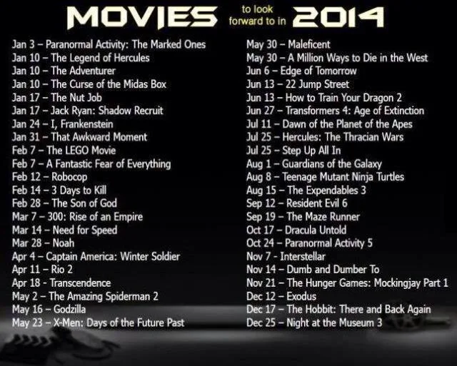 The picture below is a list of all the movies set for release this 2014. Which one are you looking forward to the most?