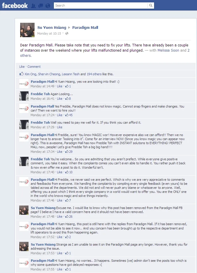 The Facebook page comments not only left Paradigm Mall scrambling to rectify the said elevator problems but to also play down the rude replies by one of their employees. But, oh you know how social media works, right? It spread like wildfire and before you know it, the posts were going here, there, and everywhere (read: viral).