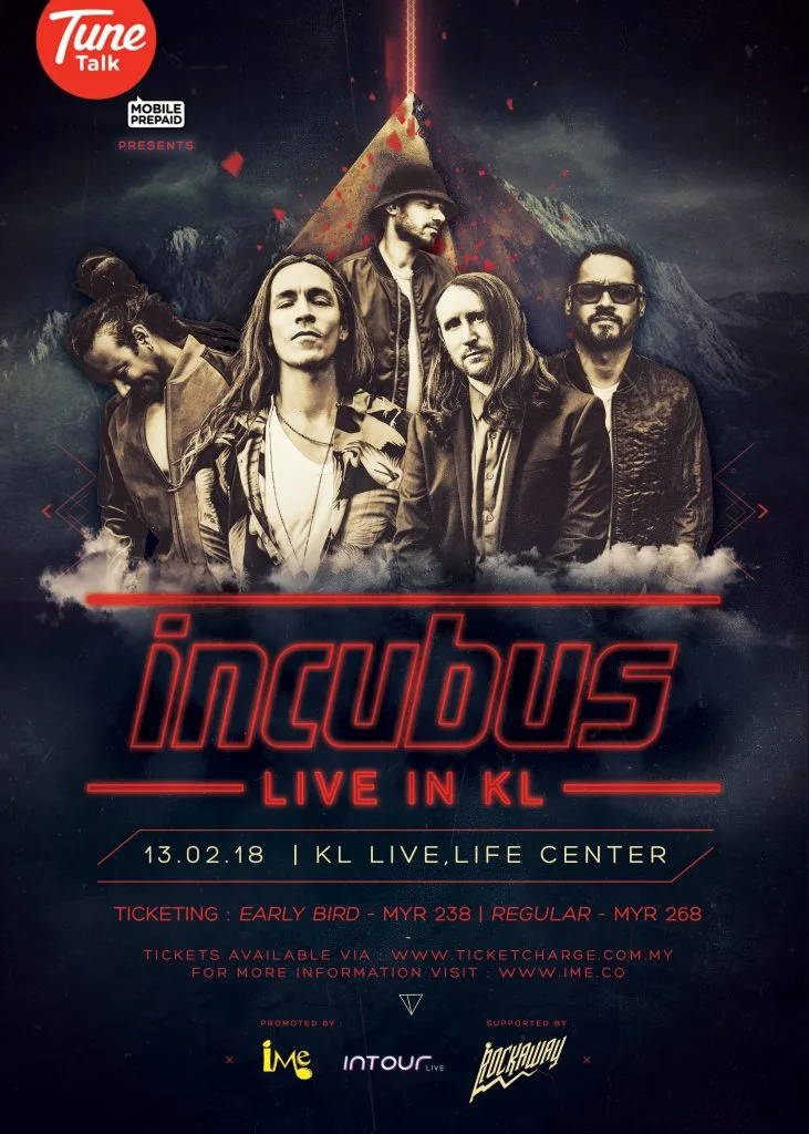 Ticket prices for Incubus Live in Kuala Lumpur 2018 Malaysia starts at RM238 (Early Bird)