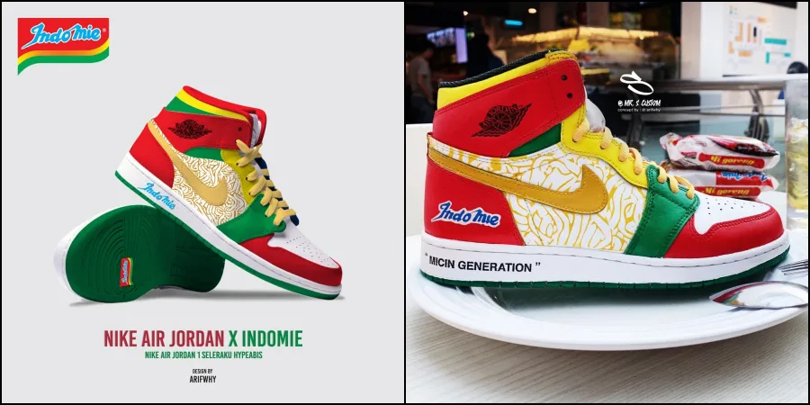 Well now, you can pair off the purse with this Indomie-inspired Nike Air Jordan sneakers, which were designed by another Indomie lovers called Mr. Simply Custom, a 23-year-old sneaker artist from Indonesia who currently based in Singapore.