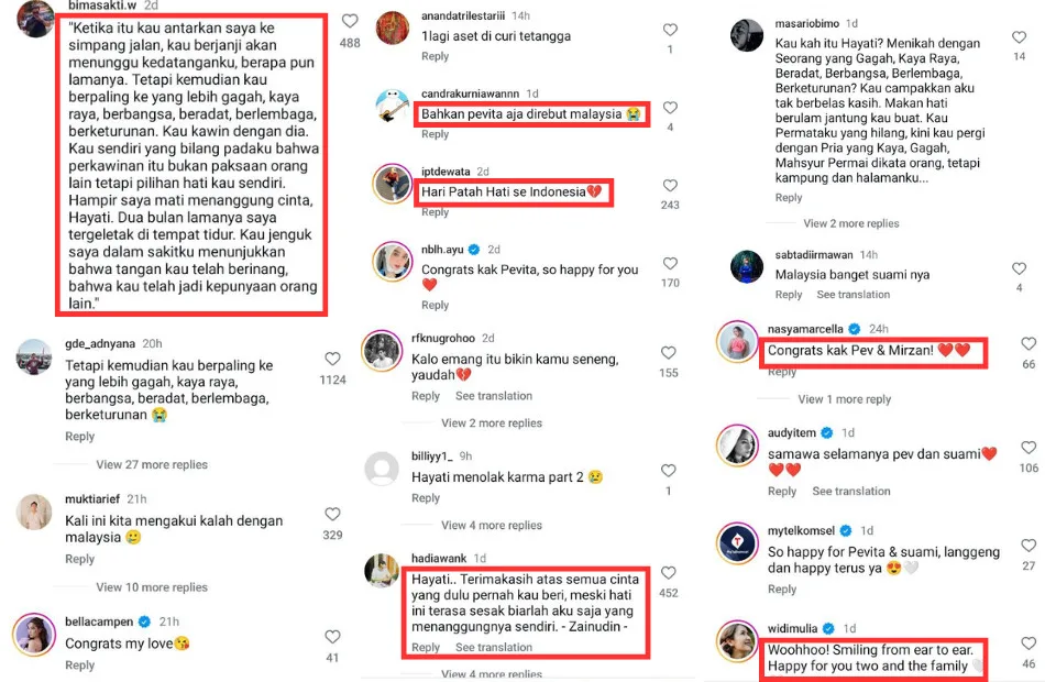 The comment section of Pevita’s posts was flooded with mixed emotions. While some fans expressed disbelief, assuming the wedding was part of a new movie, others lamented how heartbroken they were to see their celebrity crush getting married. Some even quoted emotional lines from the romantic drama “The Sinking of van der Wijck,” referencing Pevita’s role as the heroine. However, many fans also took the opportunity to congratulate the couple, wishing them happiness in their new journey together.