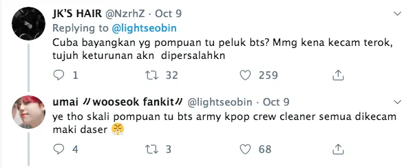 She took to Twitter to bitterly address the issue about the community’s shallow view when it comes to K-Pop music. In addition, she claimed that “only western artistes are allowed by JAKIM”, thus throwing shade to people who disgraced K-Pop music followers.