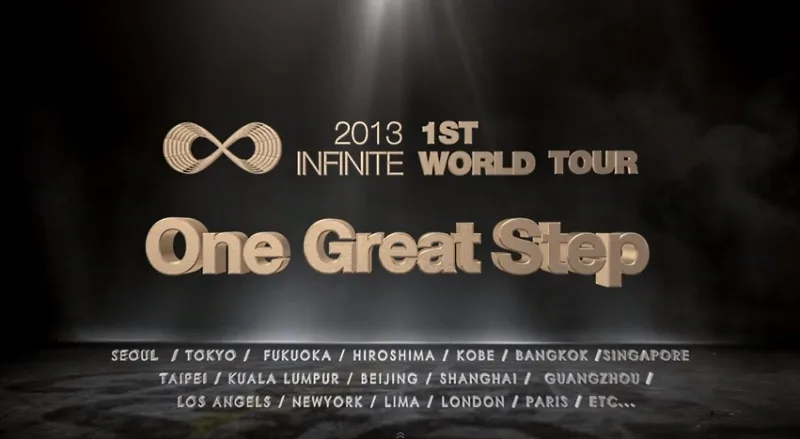 But INFINITE soon come together in stylish outfits as the “One Great Step” tour is announced. A total of 17 cities are mentioned at the end of the clip including New York and Los Angeles as well as stops in Asia (Seoul, Toyko, Kuala Lumpur), Europe (London, Paris) and South America (Lima) with an “ETC…” hinting at more cities to come.
