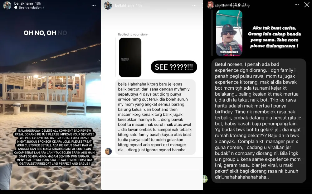 To add insult to injury, Bella revealed that Alang’s Rawa management was deleting any bad reviews about the resort. After sharing the horrible living conditions and customer service at Alang’s Rawa Resort, Norreen, and Bella received tons of responses from fans who were previous guests. Many have shared their dissatisfaction with the resort and the subpar service from the staff.