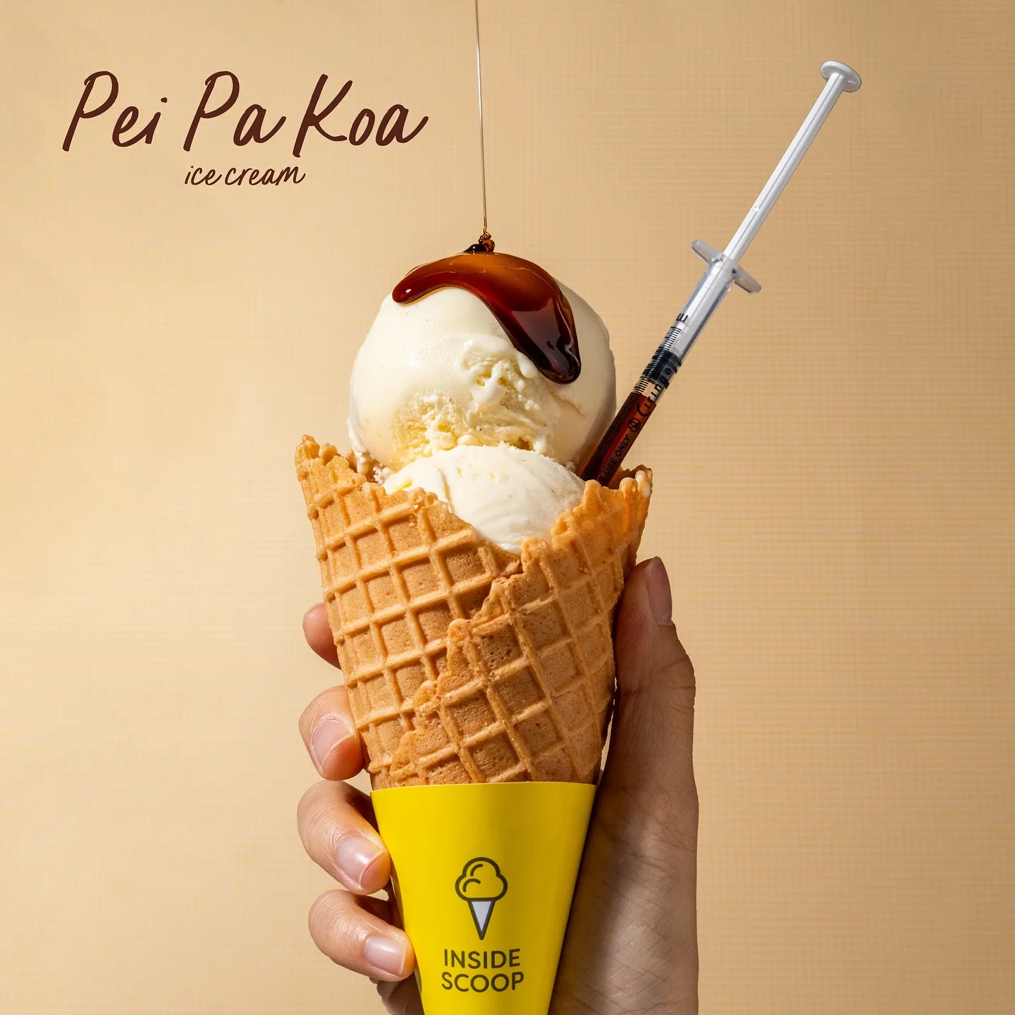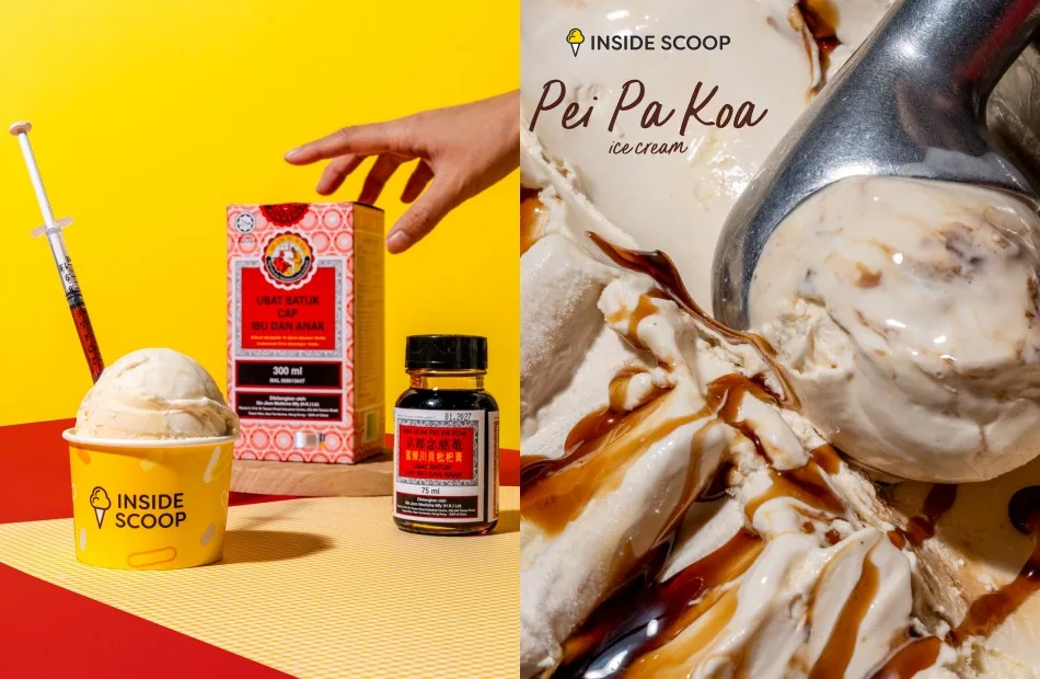 The renowned ice cream brand Inside Scoop has unveiled their latest limited unconventional flavour, inspired by Malaysia’s favourite cough syrup, Pei Pa Koa, also known as Cap Batuk Ibu dan Anak. This new flavour features a base of creamy Vanilla Bean ice cream, swirled with real Pei Pa Koa syrup.