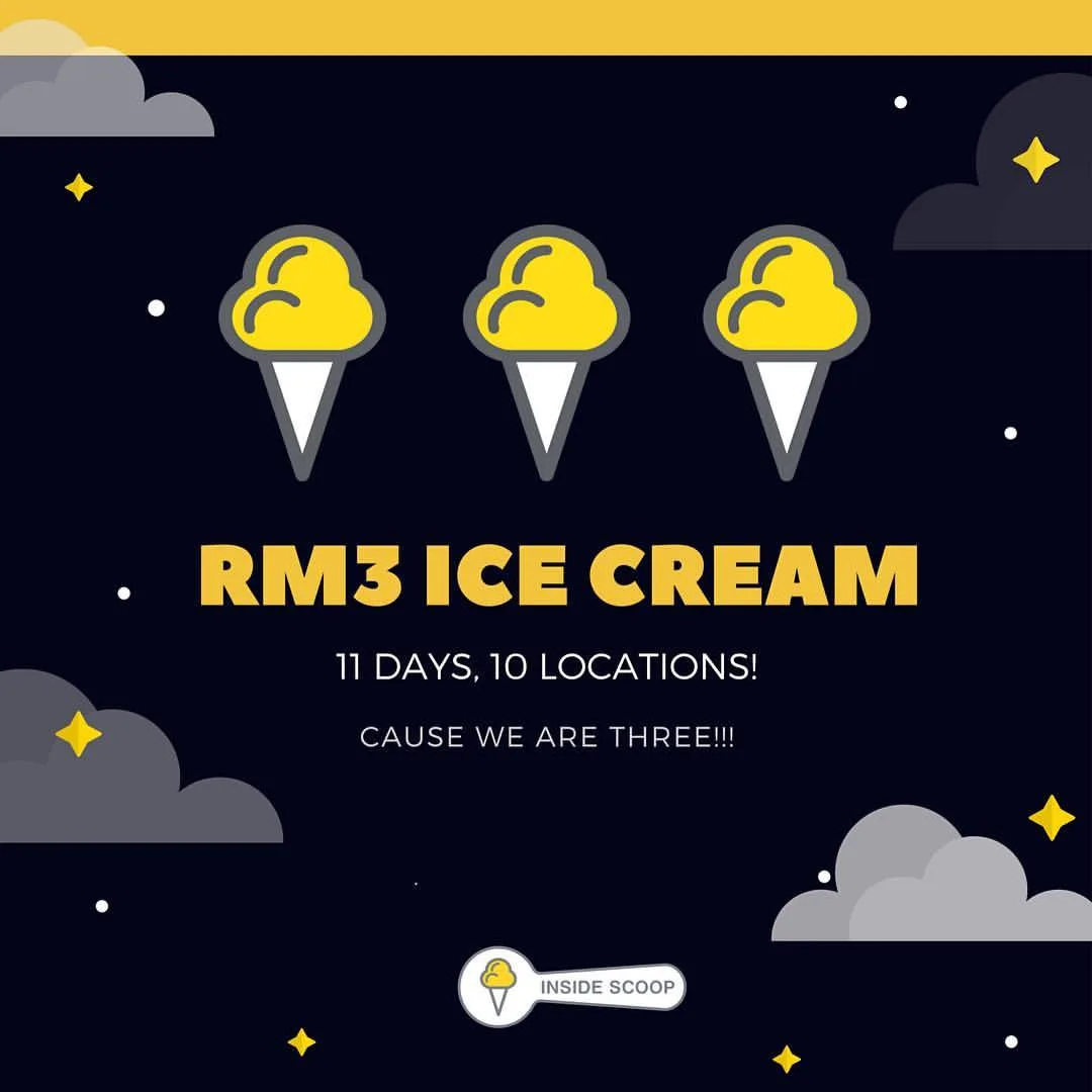 In conjunction with Inside Scoop’s 3rd anniversary, they’re offering their range of ice creams for only RM3 per scoop!