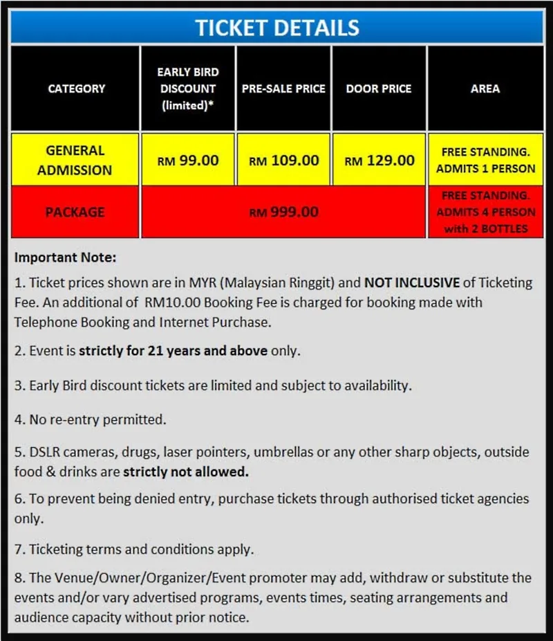 Venue: Neverland, 1 Jalan Kia Peng, 50450 Kuala Lumpur