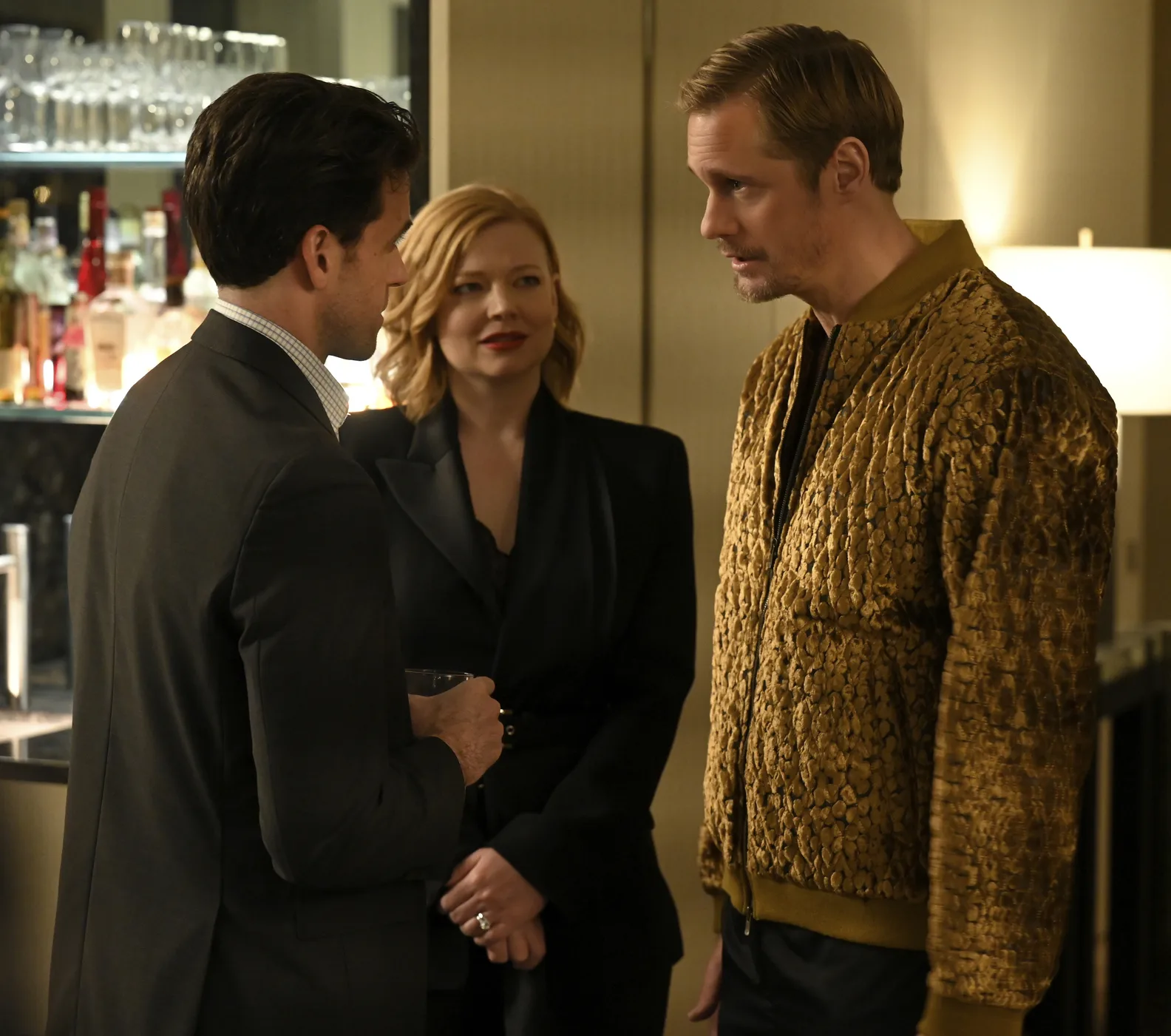 Q: Episode 7, Tailgate Party, was another great Lukas Matsson episode. He rocks up to the pre-Presidential election party that Shiv and Tom are hosting in their apartment in a bright, shiny bomber jacket. How integral for you was that coat in terms of how Matsson conducted himself in that gathering?