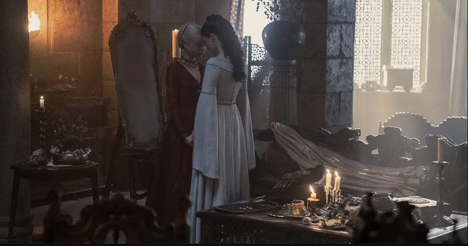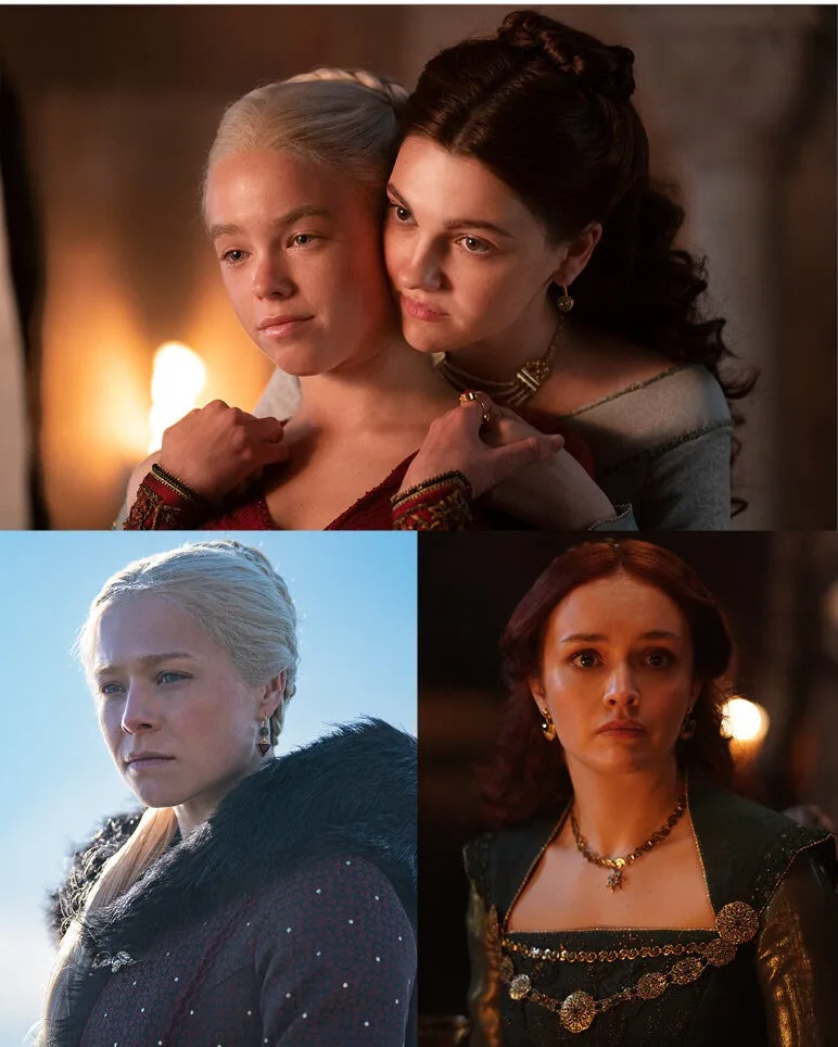It’s the whole idea of how women operate in this world that we’re viewing. We explored it a lot through the different perspectives of Rhaenyra [Milly Alcock; then Emma D’Arcy] and Alicent. As young girls, they both approached that very, very differently. Then they interact with each other and try to push their ideas onto one another. So for example, Alicent plays by the rules; she knows her duty as a woman. At first, she doesn’t really have an issue with it.