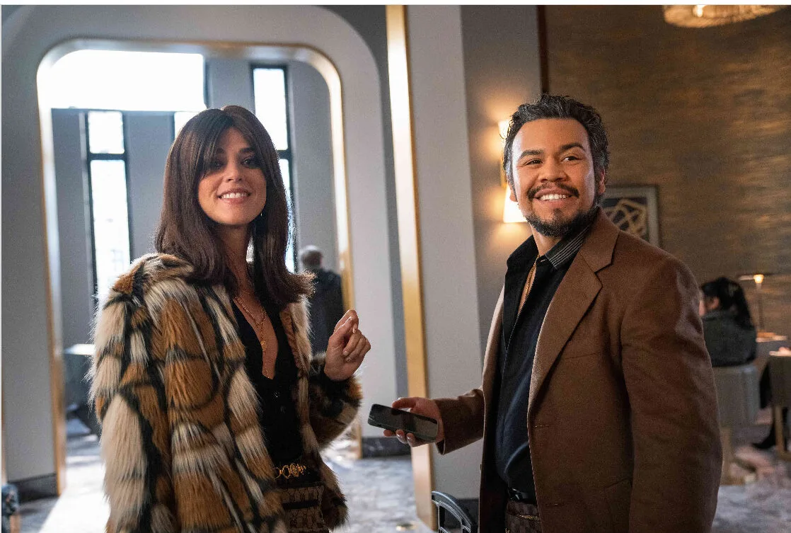 Who are Esteban and Gabrielle Diaz? That’s probably the question on viewers’ mind when Callie Hernandez and JJ Soria’s characters bump into Cassie (Kaley Cuoco) at a Berlin hotel. Although they seem like a chatty couple, Esteban is seen cloning data from Cassie’s phone when he places his device near her purse.