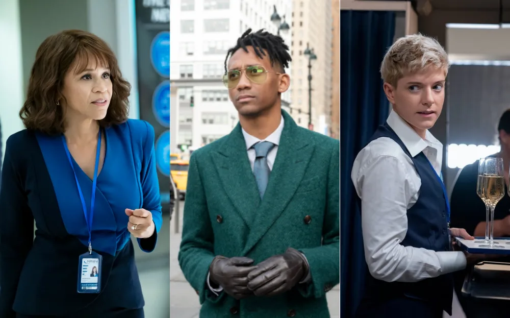 Last season we found out that Rosie Perez’s Megan Briscoe had been selling her husband’s company secrets to North Korea. As a result, there’s now a $500,000 bounty on her. Luckily for her, bounty duo Esteban and Gabrielle Diaz have confused the women with her flight attendant Cassie (Kaley Cuoco).
