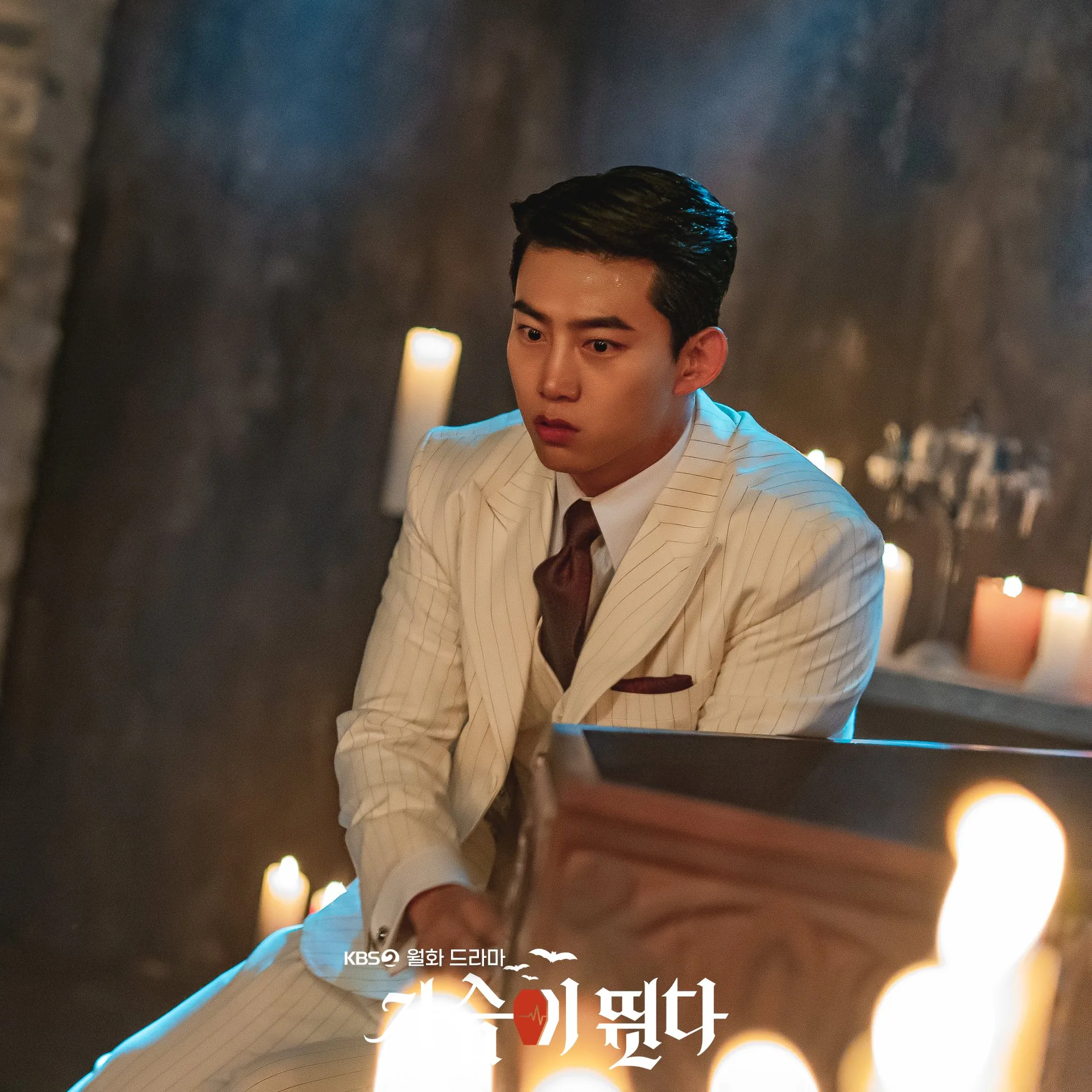 Ok Taec-yeon: For me, this is a scene which you’ll see in episode one when the show airs on the 26th. It’s a scene where my character – the vampire – wakes up from his coffin and realises he was woken up just 1 day short of when he wanted to, so he gets really mad at the person who woke him up – In-Hae – and tries to bite her and drink her blood. But in turn, he’s the one that gets bitten and faints. That’s a memorable scene for me because I didn’t think Ji-An would actually bite me, but she did, and it hurt a lot.