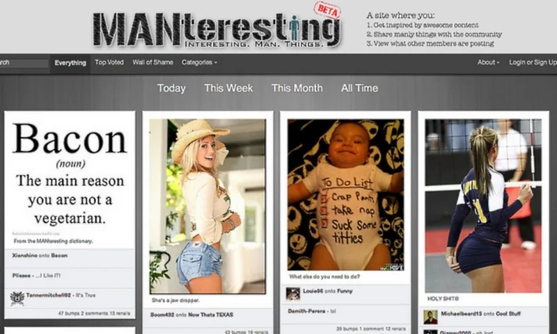 Maninteresting draws inspiration from the success of Pinterest and it targets the male demographic not just in content but also in its interface. On Pinterest, a user would “pin” images of their favourite things but on Maninteresting, a “land” where manliness is embodied via facial hair, “chicks”, “manly” food, beer, etc., they don’t “pin” things – they “nail” things.