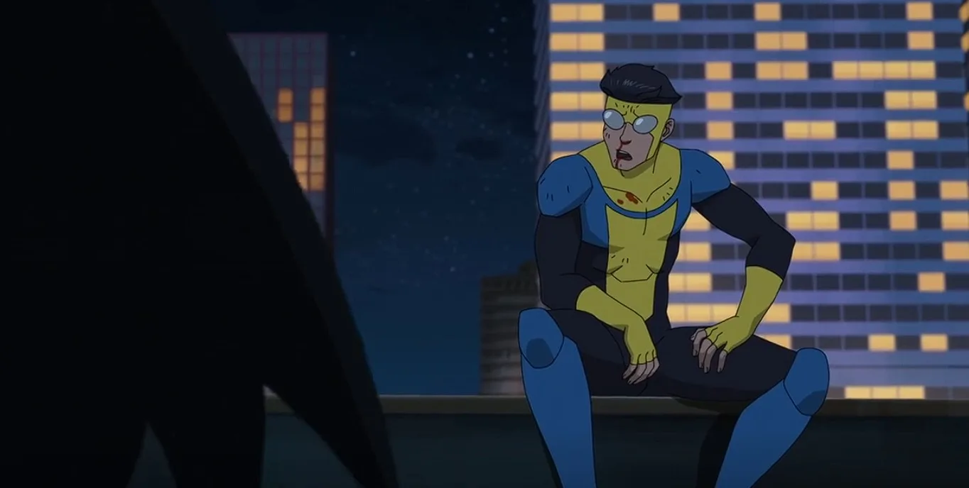 Now, the distinguished competition is not left out. At one point, Invincible is thrown into a dimension where a gothic cityscape is rising. Mark is speaking to a man with a flowing black cape and criticizes the nomenclature behind the alter ego.