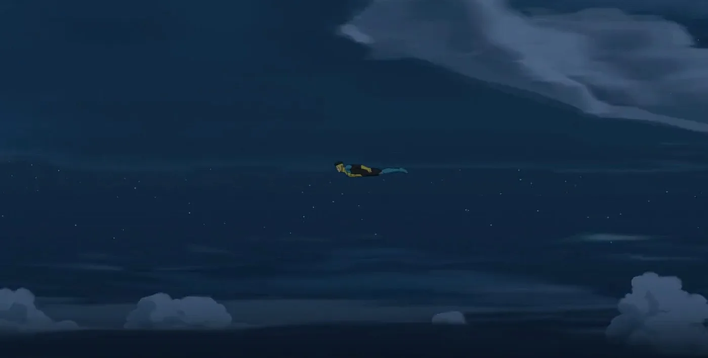Back on Earth, Mark reunites with Debbie and Cecil. He’s definitely shaken and Cecil recognises this, even advising Mark to find solitude elsewhere. In a throwback to the first episode of Season 2, we see Invincible flying through the clouds in a lost state. However, this time, it was not a family member that he had lost. It was himself.