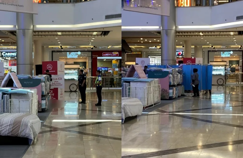 The netizen who posted the incident wrote that it happened around 10am. It was reported that the police were immediately dispatched and arrived at the scene of the incident at around 11:25am where they covered the area around the injured person with a ward screen to avoid other shoppers from seeing the tragic sight, as seen in the photo above.