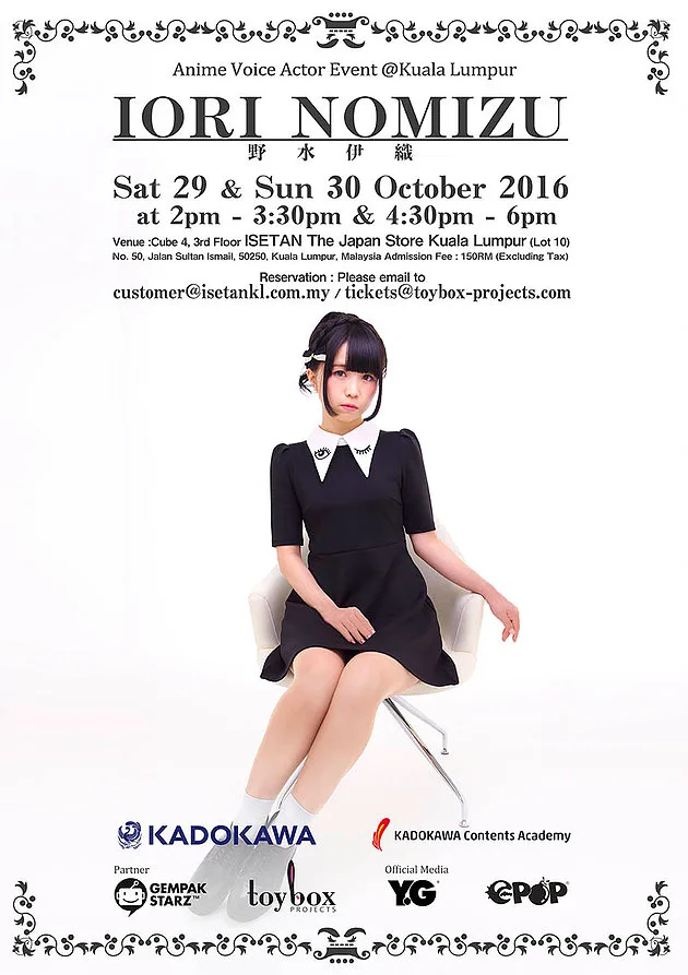 Aside from the anticipated meet & greet as well as fan autography session, the 31-year-old will also be conducting several activities during this week’s events. During the session, Iori will be sharing with fans about her working experience in the voice acting industry and anime production.