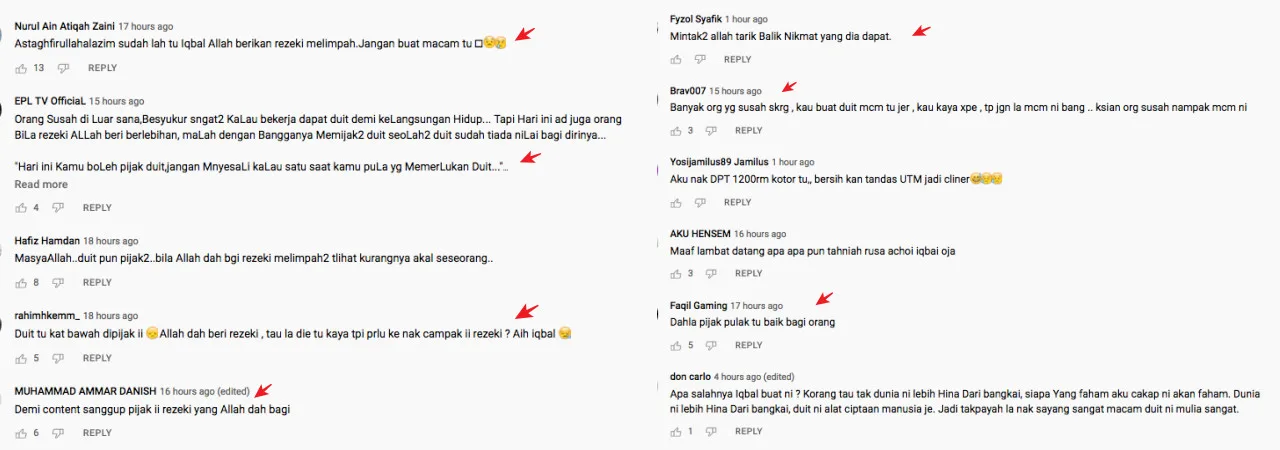 Needless to say, many netizens didn’t react too kindly to the viral video. In this case, most of them called Iqbal out for his insensitive behaviour. To quote a few commentators on social media, “He just stepped on the money, while a lot of people out there are struggling to make ends meet. Remember, your wealth is only temporary. God can take it away anytime.”