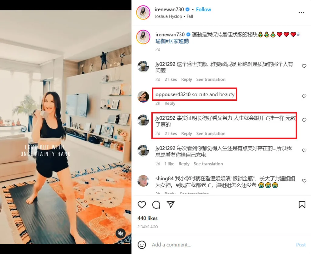 Although seemingly harmless, some netizens felt her exercise video with its filter was too much. “50-year-olds should stop acting young,” one reportedly said. “(You) insist on exercising, but your (fat) is still loose,” another claimed. However, others were quick to praise Irene and her dedication.