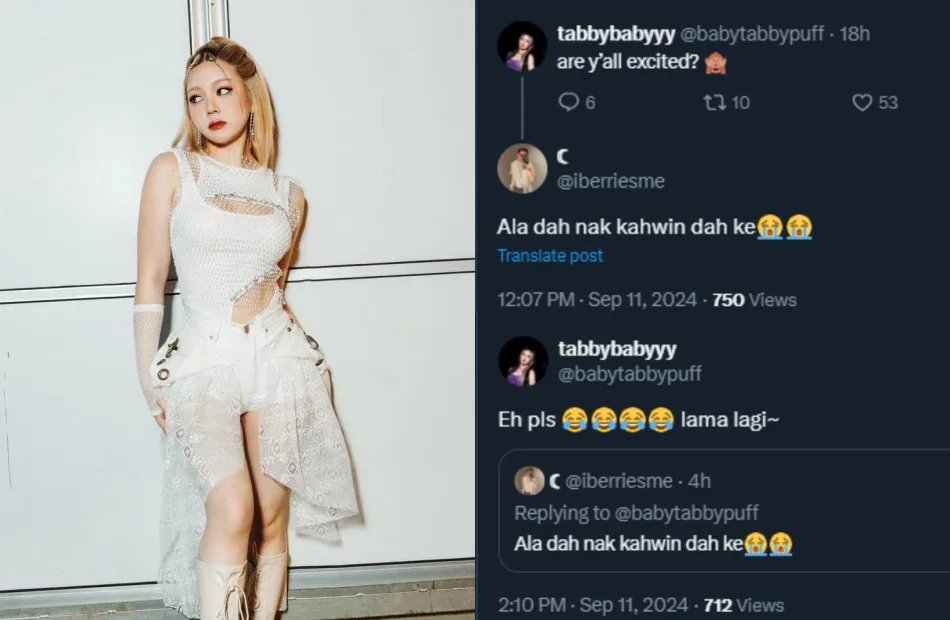 DOLLA member Tabby has been actively responding to fans on Twitter lately about their recent and upcoming shows. Yesterday (Tuesday, 10th September), the singer asked fans if they were excited for what was to come but did not specify what it was which prompted a netizen to ask if she was going to surprise everyone with a marriage announcement.