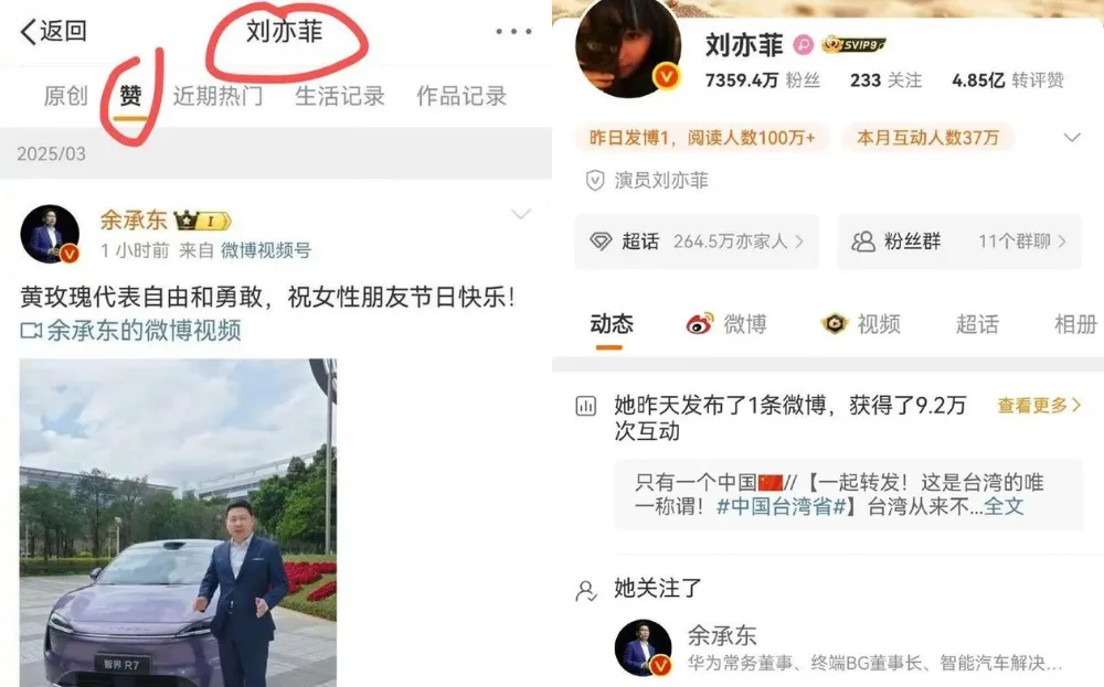 Recently, netizens discovered that Huawei’s Chairman for the Board of Directors of the Consumer, Richard Yu (余承东), and the Mulan actress were following each other on Weibo. This action came shortly after Liu Yi Fei liked a video of Richard wishing International Women’s Day. In the video, the Huawei chairman filled a Luxeed R7 car with yellow roses. He also said, “Yellow roses symbolise freedom and courage. Happy International Women’s Day”.