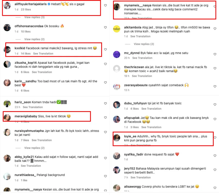 While the news may be exciting, how do her TikTok and IG followers feel about this? It’s no surprise that fellow celeb entrepreneur Dato Aliff Syukri is on board with the transition – but her fans, not so much. Many expressed their concerns about the “Makhluk Penggoda” singer going back to Facebook, as there are lots of Mak Cik Bawangs there that will attack her in the comments. Some prefer her to stay on TikTok, as the app is not as restrictive as Facebook.