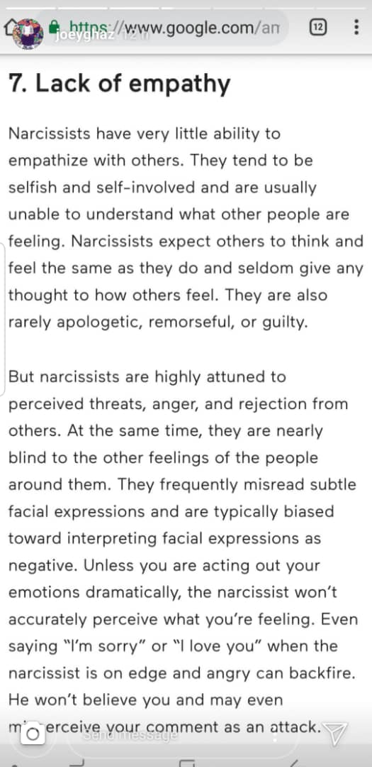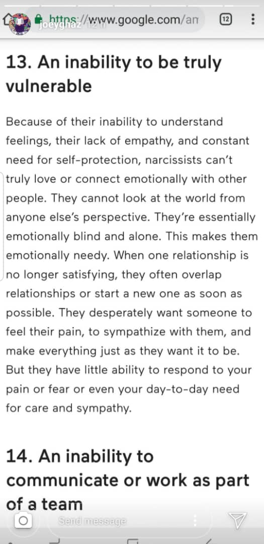 On the other hand, we took a look at Joey G’s Instagram and found out that he has gone private, but thanks to our insiders, we found out that he has sort of responded to Patricia’s jab by sharing several screenshots of an article from Mind Body Green, titled “14 Signs You’re Dealing With A Narcissist”.