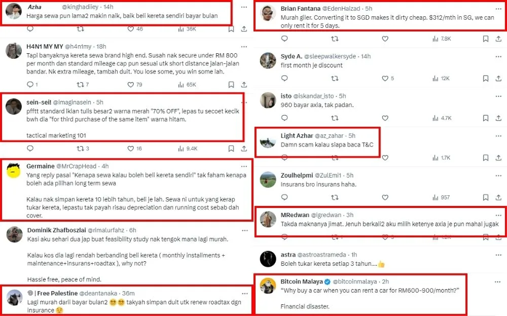 Many netizens have responded to the post, sharing mixed reactions. Many were shocked at the possibility of renting a car being cheaper than owning one, saying it could be a good option for some. Others were unsurprisingly skeptical of the prices, saying there might be hidden charges within the terms and conditions. Some immediately argue that renting a car is not a good alternative and even calling it a “financial disaster”.