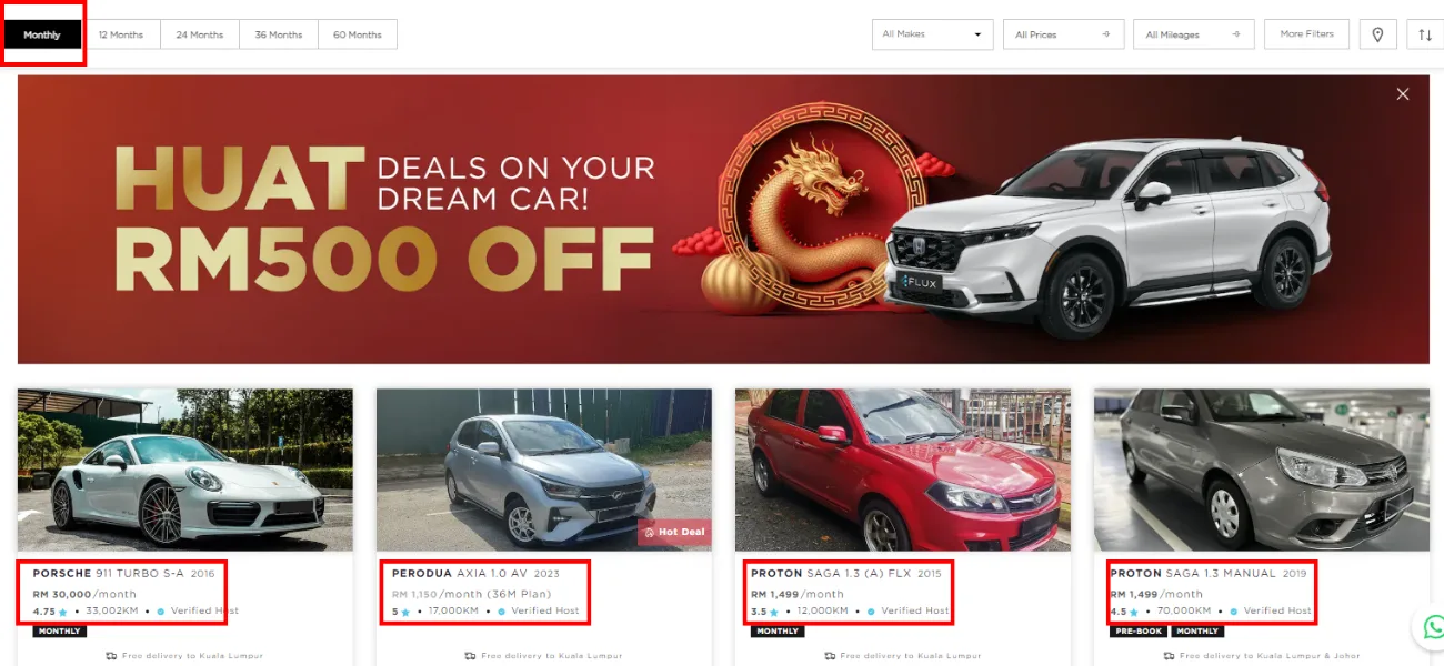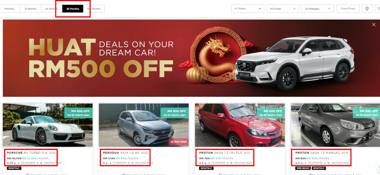Of course, looking at the prices for the car rental, you might think that it sounds too good to be true – and that’s because it is. The name of the car rental service is Flux. By clicking on the link, the Picky shows that the prices are only applicable if you rent the car for 36 months. If you rent a car for only a month, you’ll have to pay at least RM2,000, even for a domestic brand. It may be cheaper if you join their subscription service, but there are still several steps before you can get the price advertised in Picky’s tweet.