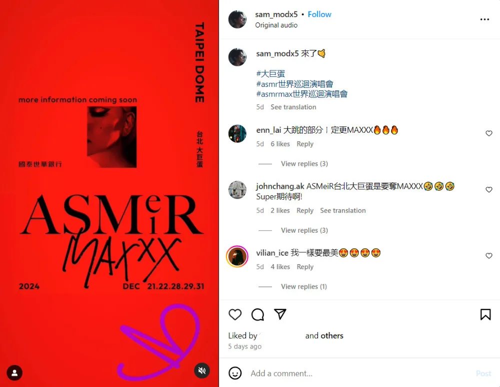 SOURCES: INSTAGRAM (@sam_modx5) & FACEBOOK (張惠妹 A-mei/A-mit)