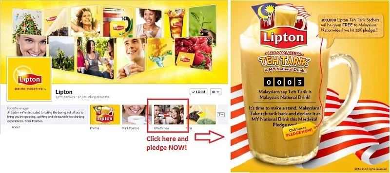 As part of “I’m a Malaysian, Teh Tarik is MY National Drink”, Lipton will distribute 200,000 sachets of the 3-in-1 Lipton Teh Tarik (a new variant that was launched in March 2012) once they’ve secured 55,000 pledges from Malaysians. Key distribution points in 13 Malaysian states will be announced at the end of September.