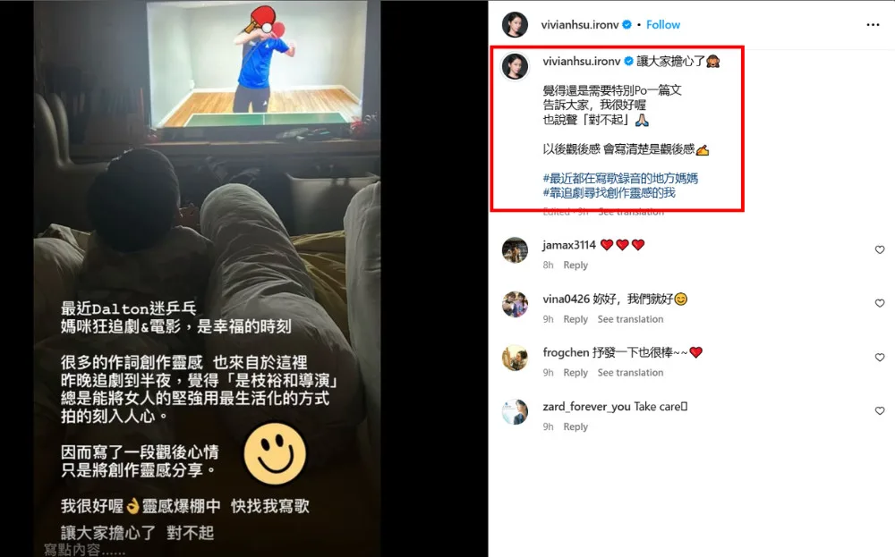 Following netizens’ concerning messages, Vivian posted on Instagram to assure fans that she’s fine and there is nothing to worry about. According to the star, the photos and her captions were merely reflections after watching a film, noting that she felt a creative inspiration. She also apologised for causing concern with her postings. Fans have since reacted to the post, expressing relief that the star is doing well.