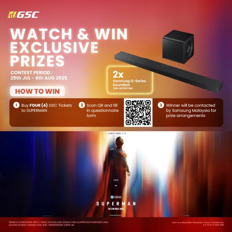 And if you’re catching “Superman” at Golden Screen Cinemas — whether it’s your first watch or your tenth — make it count. From 25th July (Friday) to 6th August (Tuesday), moviegoers with Aurum or BIG tickets can complete a short creative questionnaire for the chance to win one of four Samsung OLED TV and Soundbar combos, each worth RM10,998. It’s a prize even Lex Luthor would envy.