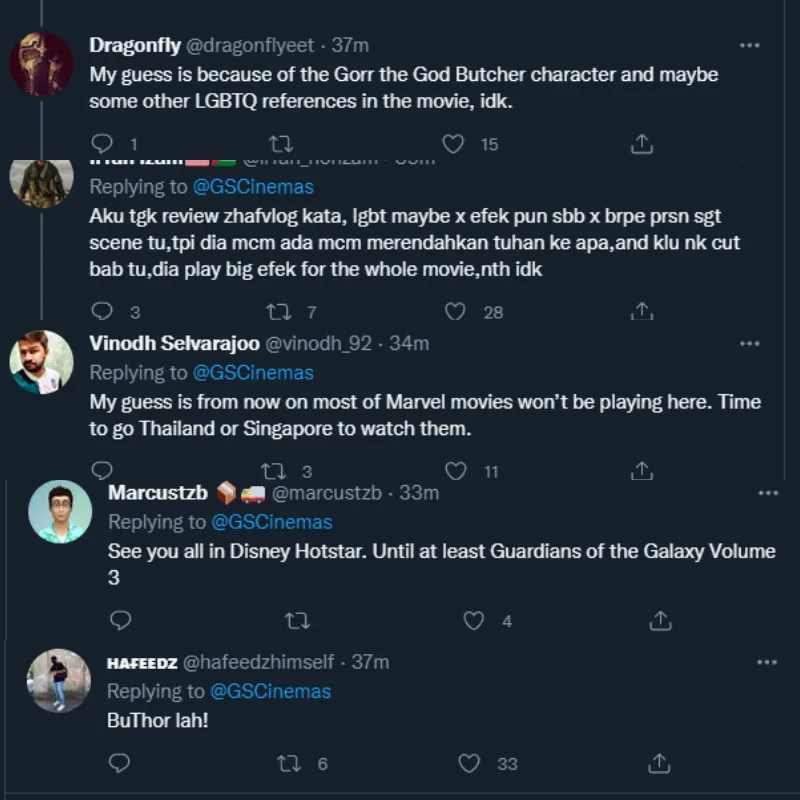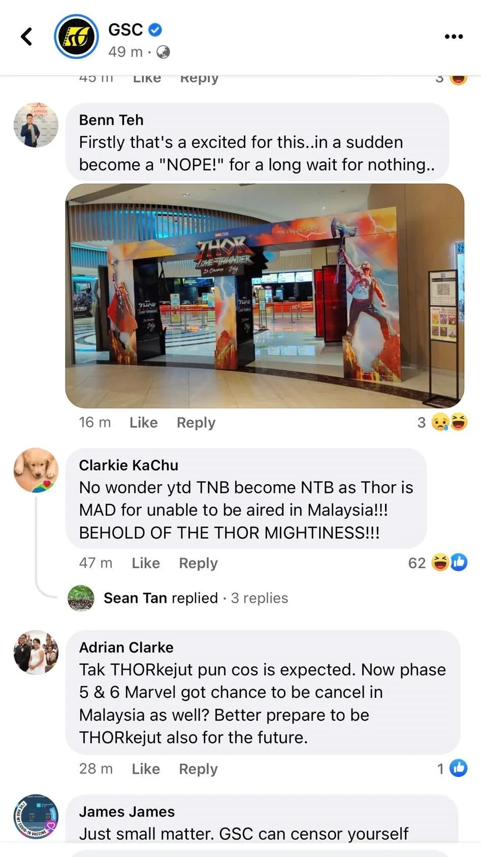 Once more, neither GSC, Disney nor Marvel Studio gave reasons as to why Malaysian fans won’t get to see the God of Thunder gracing the big screens. Fans again speculated it is still due to the LGBTQ+ elements in the movie. GSC replied to their tweet saying that fans will still be able to buy official Thor movie merchandise as a way to compensate for not being able to watch the movie.
