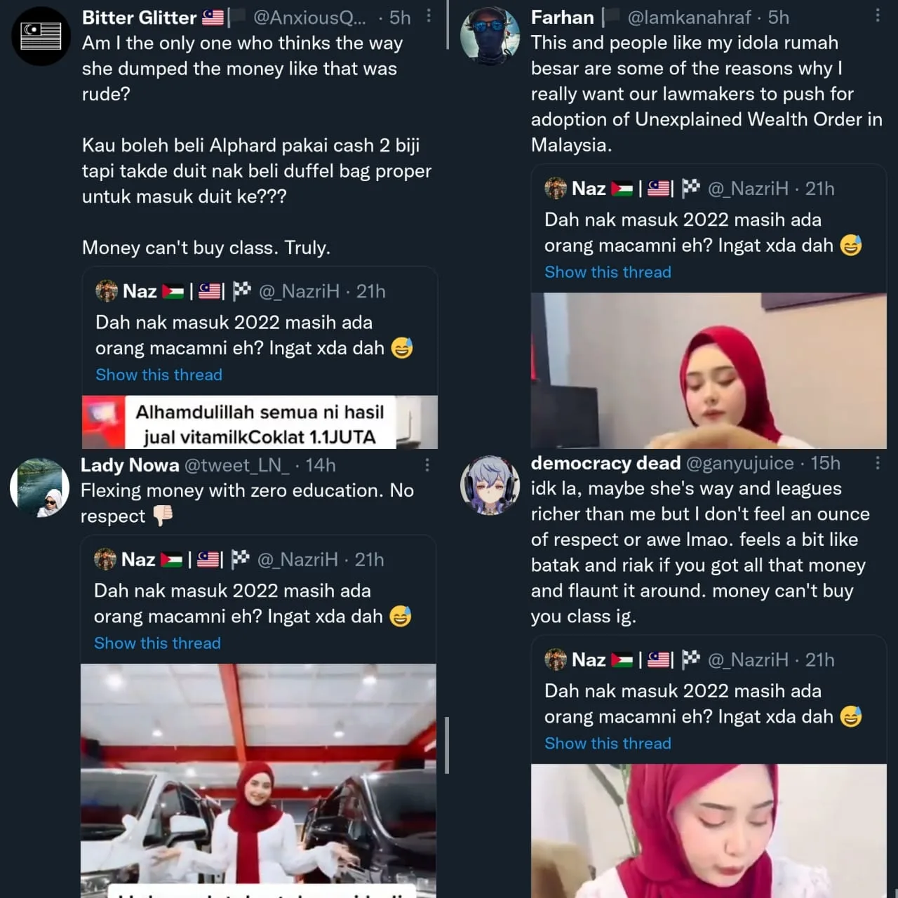 Due to the viral video, netizens began digging around the 18-year-old product founder’s past videos especially on her main TikTok account. It seems like a common occurrence for the young couple to show off their wealth with their spontaneous car purchase. Netizens made another shocking discovery when the founder once bought two luxurious Toyota Alphard cars in cash in a video that resurfaced and circulated on Twitter.